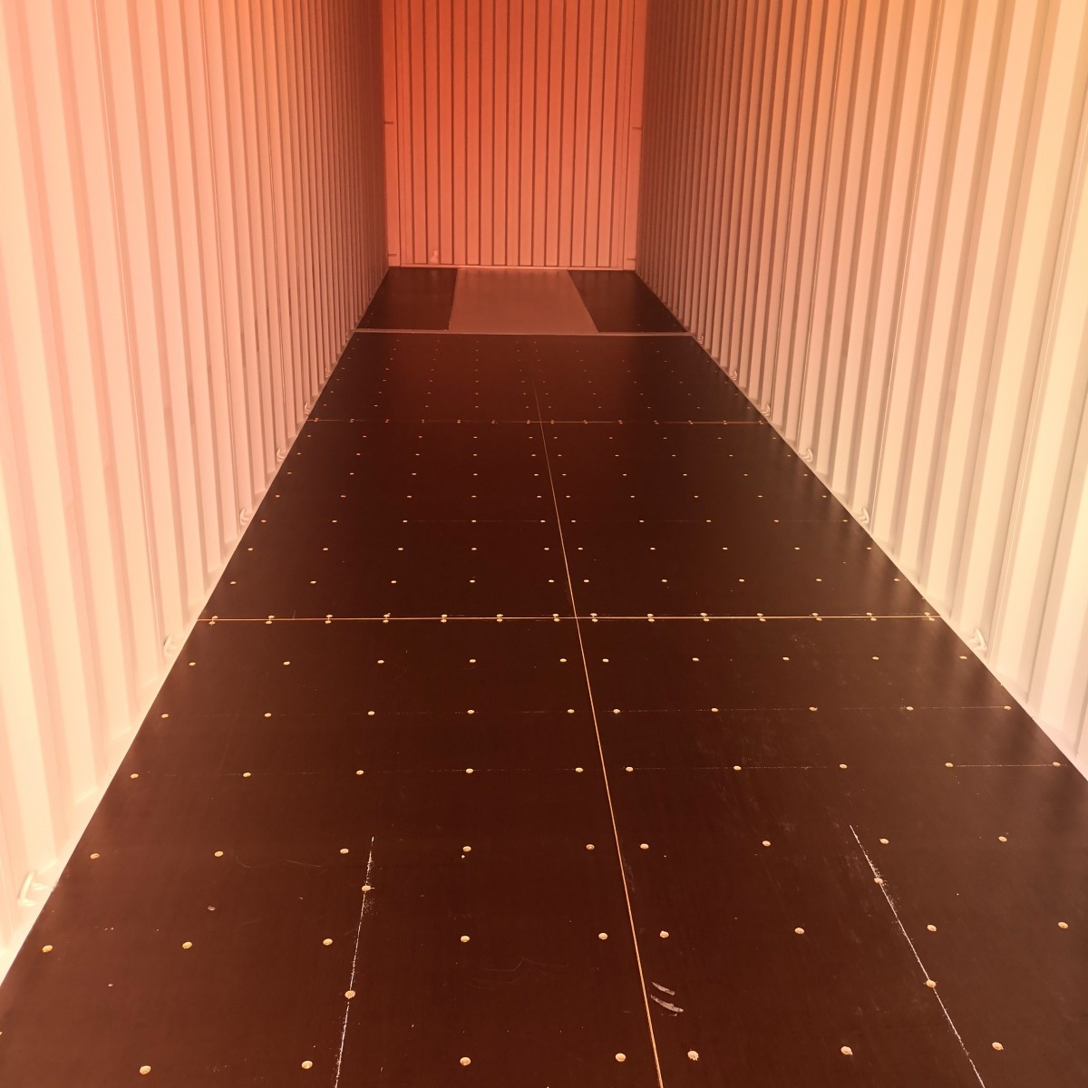 用于集裝箱內部底板。一般由高強度的竹簾搭配優(yōu)質的木皮(橡木、桉木、櫸木),按一定的順序組坯,經高溫高壓壓制成型,集裝箱底板膠水使用濃度為普通竹膠板的1.5倍以上,其板面平整、內在強度高,抗壓抗腐蝕,單張板材能承載6-7.3噸的重量。